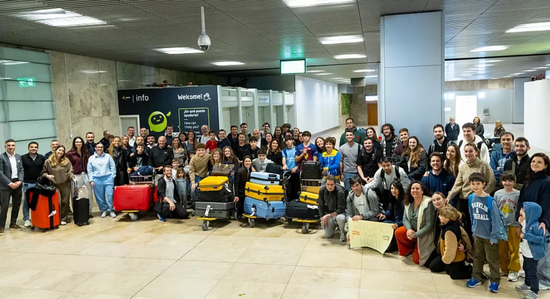 本周三12:50,包机终于起飞飞往马德里,经埃及洪加达加油中转。他们终于可以回家了!当踏上西班牙国土,所有人情绪激动。西班牙足协主席拉斐尔-卢桑与其他参与行动的高管在机场迎接时,也真切感受到了这份喜悦。